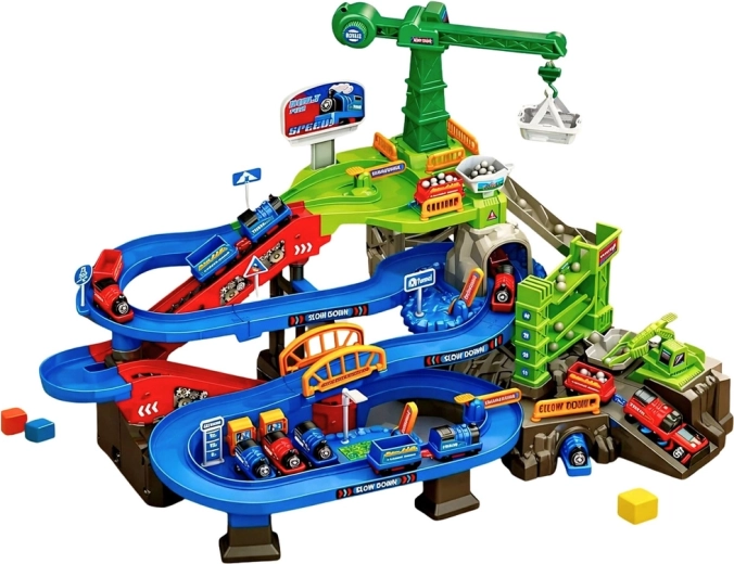 Součástí je stanice paliv, tunel a jeskyně, důlní prvky a nákladní vlak s vagony. Hudební efekty dodají hře atmosféru a kvalitní, odolné plastové provedení zaručí bezpečné a dlouhodobé používání.