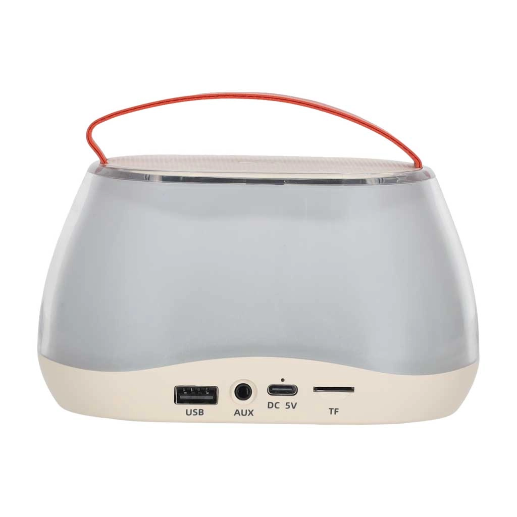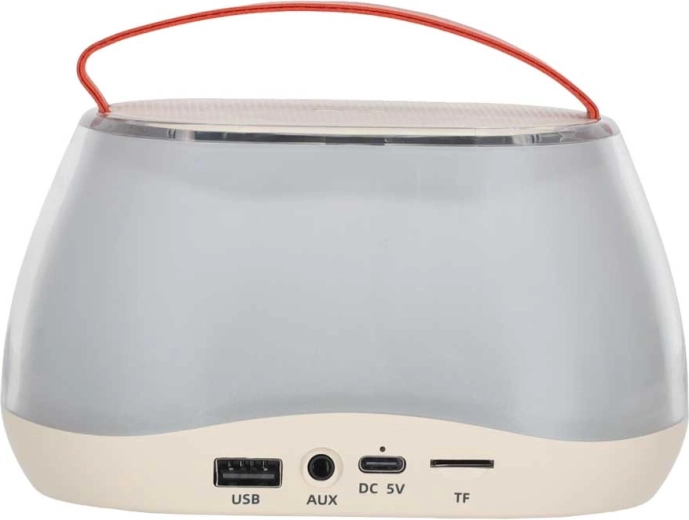 Bluetooth pro bezdrátové streamování, USB a TF/microSD pro soubory z flashky, AUX pro kabelové zdroje. Nabíjení přes DC 5 V/USB-C.