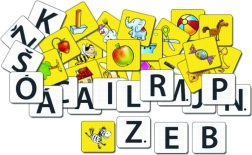Balení obsahuje: 64 písmen na kartičkách, 32 obrázků na kartičkách, 30 barevných žetonů a český návod.