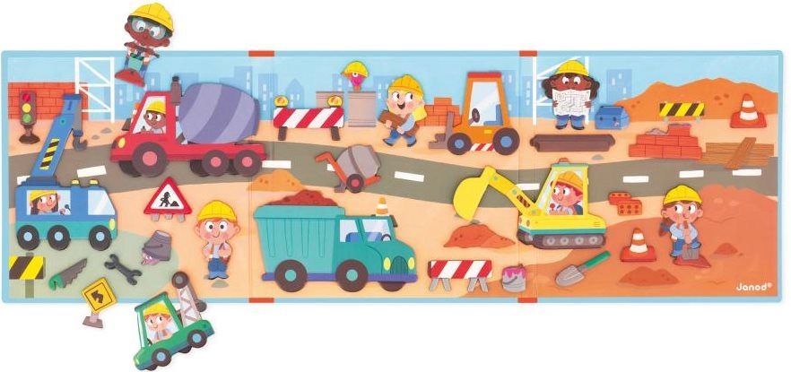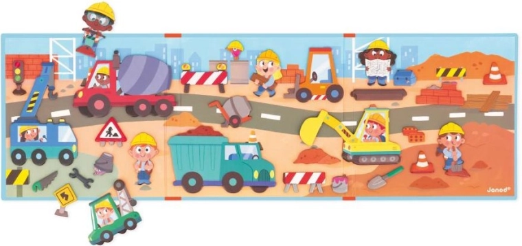 Magnetická kniha Janod na téma stavby je perfektní volbou pro zábavu i učení. Děti si mohou skládat různé scény, vytvářet příběhy a trénovat jemnou motoriku i logické myšlení. Díky pevnému podkladu a kvalitním magnetům drží dílky na místě, ať už jste doma nebo cestujete.