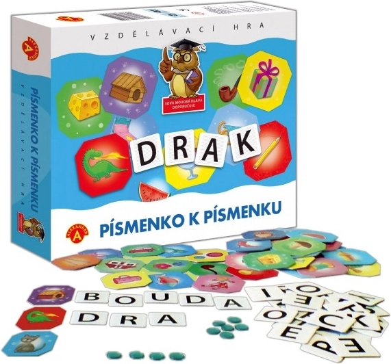 Hra Písmenko k písmenku od značky Alexander je skvělým pomocníkem při prvním seznamování s abecedou. Děti si díky barevným obrázkům a kartičkám s písmeny hravou formou procvičí rozpoznávání písmen, slabikování a základy čtení. Pravidla nabízejí dvě úrovně obtížnosti pro menší i větší děti a umožňují hru jednotlivce i více hráčů.