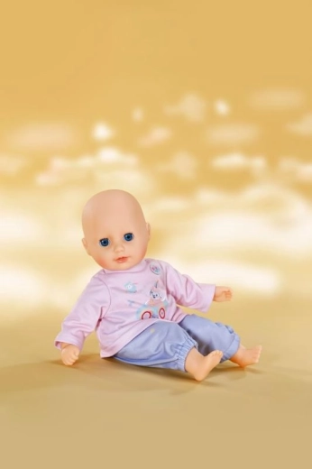 Dopřejte své panence pohodlí i styl s touto jemně pastelovou teplákovou soupravou pro velikost 36 cm. Růžové tričko poskytuje volnost pohybu, zatímco fialové kalhoty s ležérním střihem jsou perfektní pro dlouhé hodiny hraní a rolových her.
