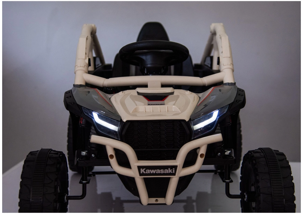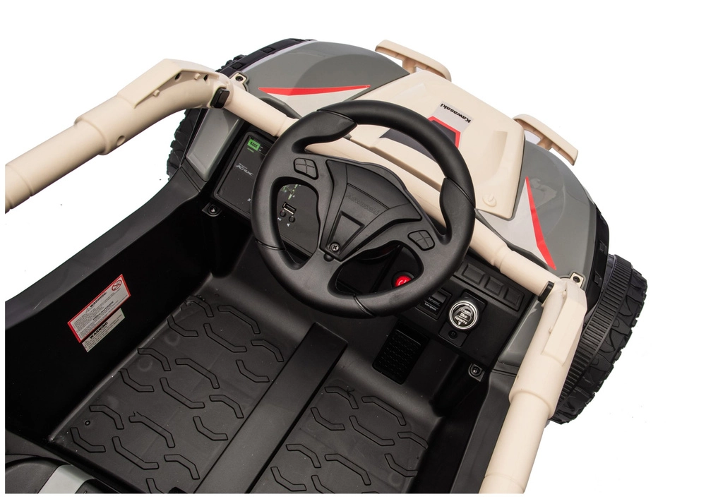Užijte si akční vyjížďky s dětským vozítkem KAWASAKI JS330. Styl UTV/buggy, široký rozchod kol a detailní odpružení zajišťují stabilitu i na nerovném povrchu. Interiér s volantem, startovacím tlačítkem a přehlednými spínači přináší autentický řidičský zážitek.