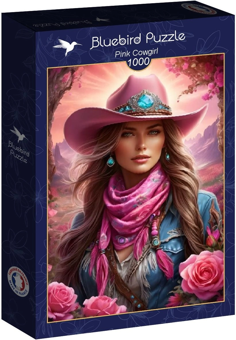 Užijte si relax u skládání kvalitního puzzle BLUEBIRD s motivem Růžová cowgirl. Balení obsahuje 1000 dílků a po složení vytvoří obrázek o rozměrech přibližně 47,8 × 69 cm – ideální velikost pro rámování i vystavení.
