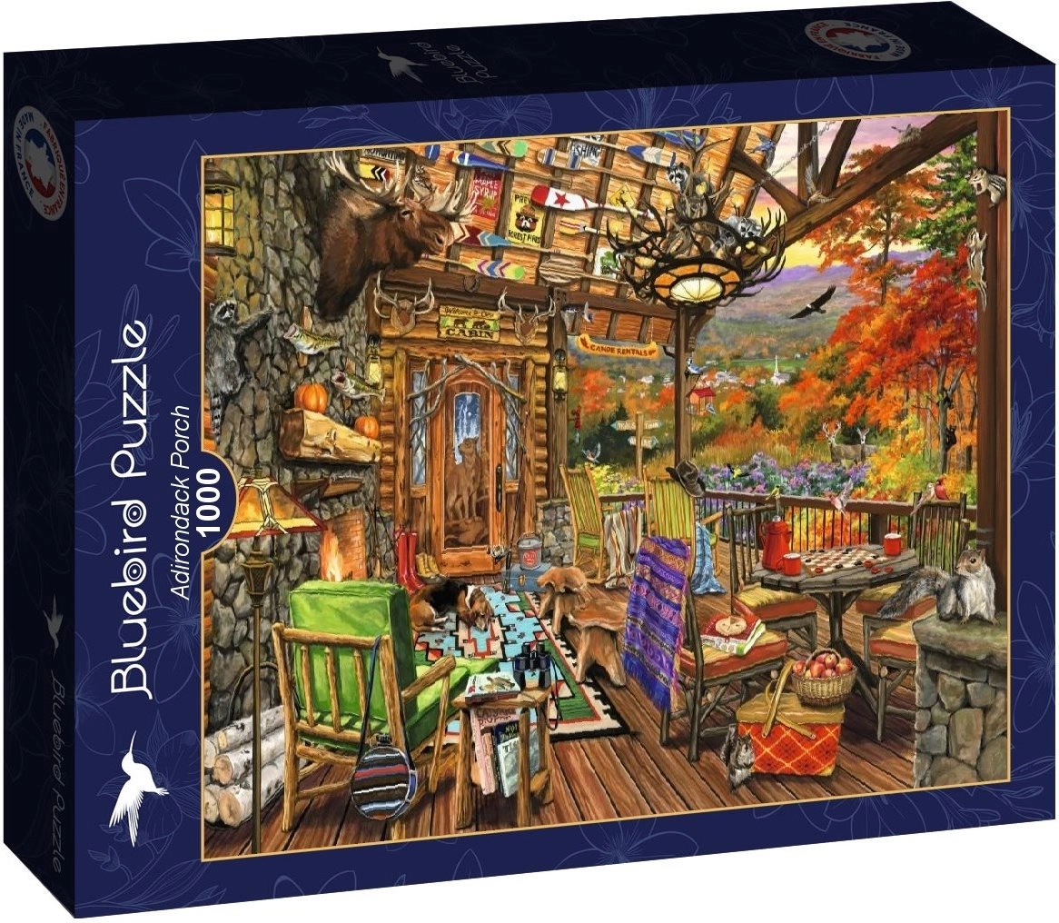 Objevte atmosféru klidné verandy s motivem Adirondackých křesel a nechte se unést detailní ilustrací. Puzzle s 1000 dílky nabízí příjemnou výzvu pro začátečníky i zkušené skládače a po sestavení vytvoří dekorativní obraz o rozměru cca 69 × 47,8 cm.