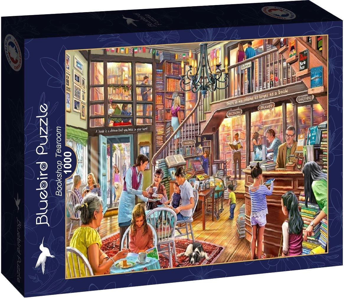 Objevte kouzlo útulného knihkupectví na kvalitním puzzle o 1000 dílcích od značky BLUEBIRD. Díky preciznímu výseku, sytým barvám a příjemnému povrchu přináší relaxační skládání a krásný výsledný obraz o rozměru přibližně 69 × 47,8 cm.