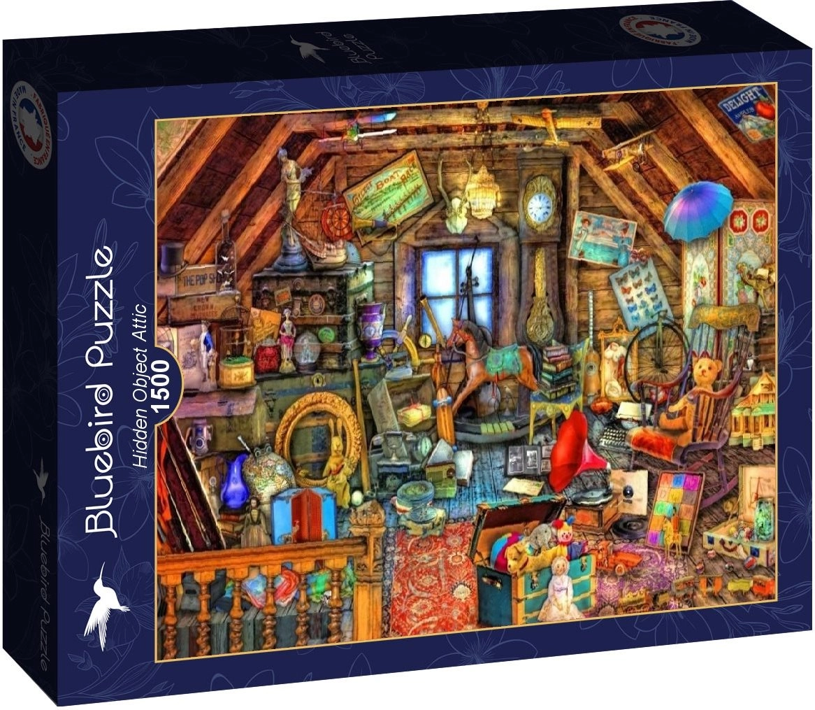 Puzzle BLUEBIRD „Poklady z půdy“ s 1500 dílky je skvělou volbou pro milovníky detailních ilustrací a nostalgické atmosféry. Velikost po složení 85 × 61 cm nabízí ideální prostor pro jemné detaily a příjemnou výzvu pro pokročilejší skládače.