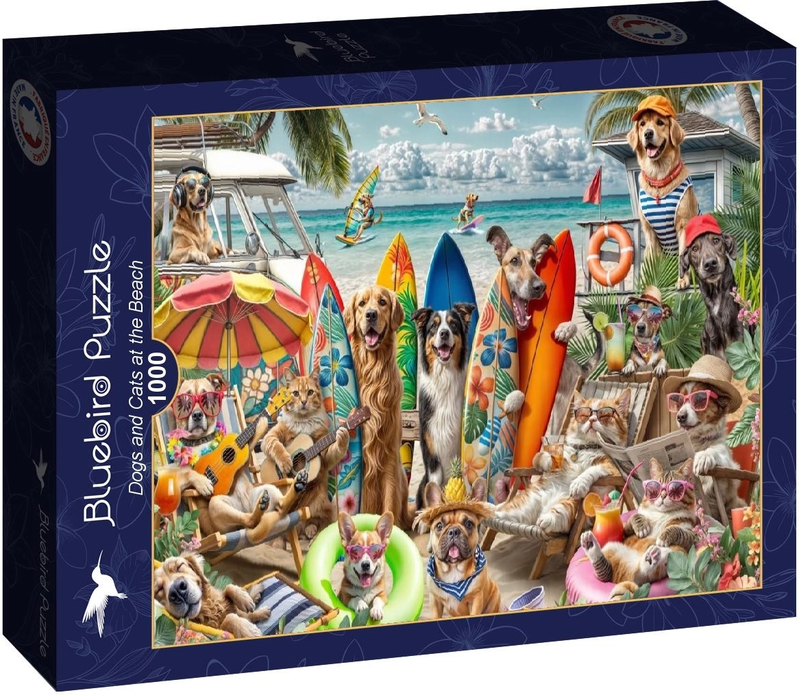 Užijte si relax s kvalitním puzzle s motivem roztomilých mazlíčků u moře. Skládačka o 1000 dílcích nabízí krásný detailní motiv, příjemný formát pro pohodlné skládání a ideální volbu pro milovníky zvířat i rodinné chvíle.