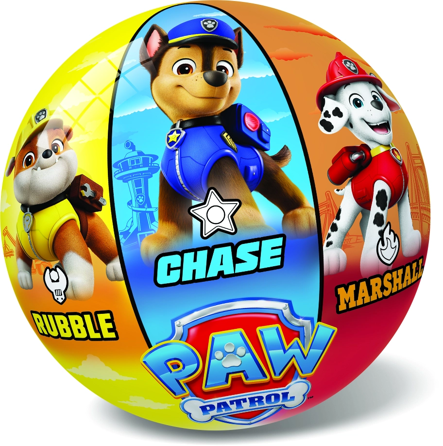 Barevný dětský míč s motivy PAW Patrol je ideální na hraní doma i venku. Průměr 23 cm, hladký plastový povrch a veselé potisky oblíbených hrdinů jako Chase, Marshall, Skye, Zuma či Rocky. Skvělý pro házení, chytání i kopání.