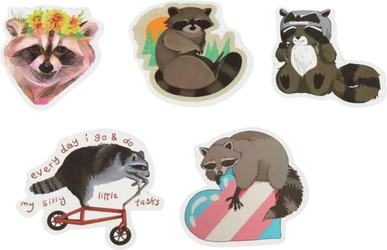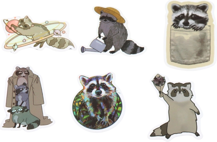 Tato rozmanitá kolekce samolepek s motivem mývala potěší děti, teenagery i dospělé. Každý kus přináší jiný styl a náladu – od roztomilých ilustrací až po vtipné nápisy – takže snadno sladíte vzhled s projektem, tématem nebo dárkovým balením. Velikost 7–8 cm zajišťuje skvělou viditelnost a zároveň pohodlnou manipulaci.