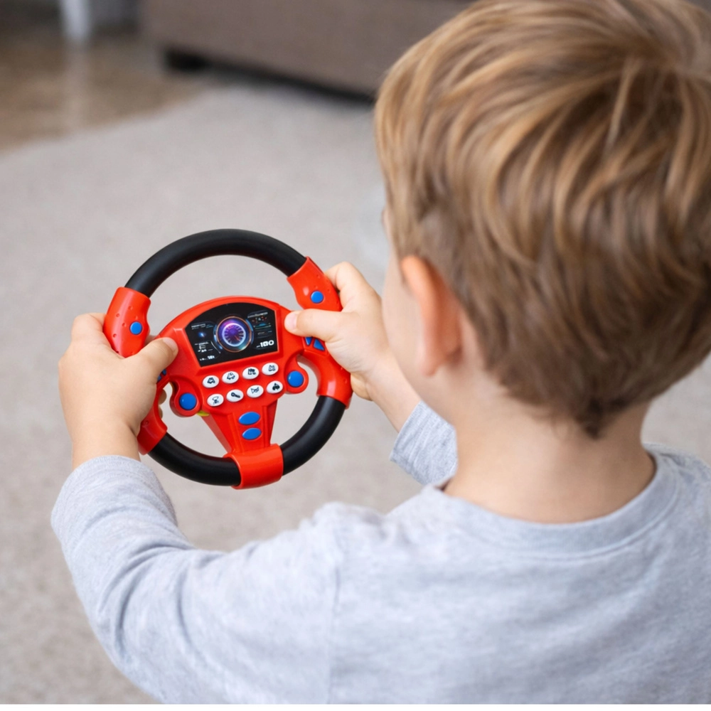 Zábavný a vzdělávací volant pro malé řidiče nabízí realistické ovládání, efekty zvuků vozidel a bezpečné upevnění přísavkami. Díky otočnému věnci, přehlednému panelu s tlačítky a kompaktní velikosti podporuje koordinaci ruka–oko, kreativitu a učení formou hry.