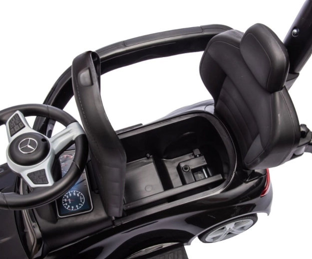 Stylové dětské odrážedlo MERCEDES C‑Class v elegantní černé barvě přináší realistický vzhled, bezpečnou jízdu a pohodlí pro malé řidiče. Díky vodicí rukojeti, bočním zábranám, výklopným stupačkám a úložnému prostoru pod sedadlem je ideální pro první výlety i domácí hraní, a zároveň podporuje rozvoj motoriky a koordinace.