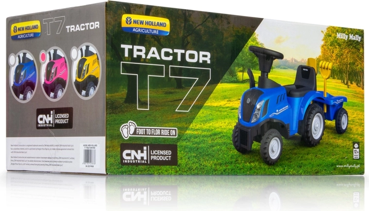 Růžové odrážedlo NEW HOLLAND T7 je kvalitní dětský traktor s licencí, který kombinuje odolné materiály, promyšlené bezpečnostní prvky a zábavné funkce. Díky stabilní čtyřkolové základně, kovovým osám kol a ochraně proti převrácení se děti mohou pohybovat bezpečně doma i venku. Otočná přední kola a pohodlné sedlo s opěrkou zajistí snadné řízení a komfort při jízdě.