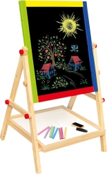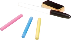 - tabule se stojanem, 3 ks barevných kříd, 1 ks fix a houbička