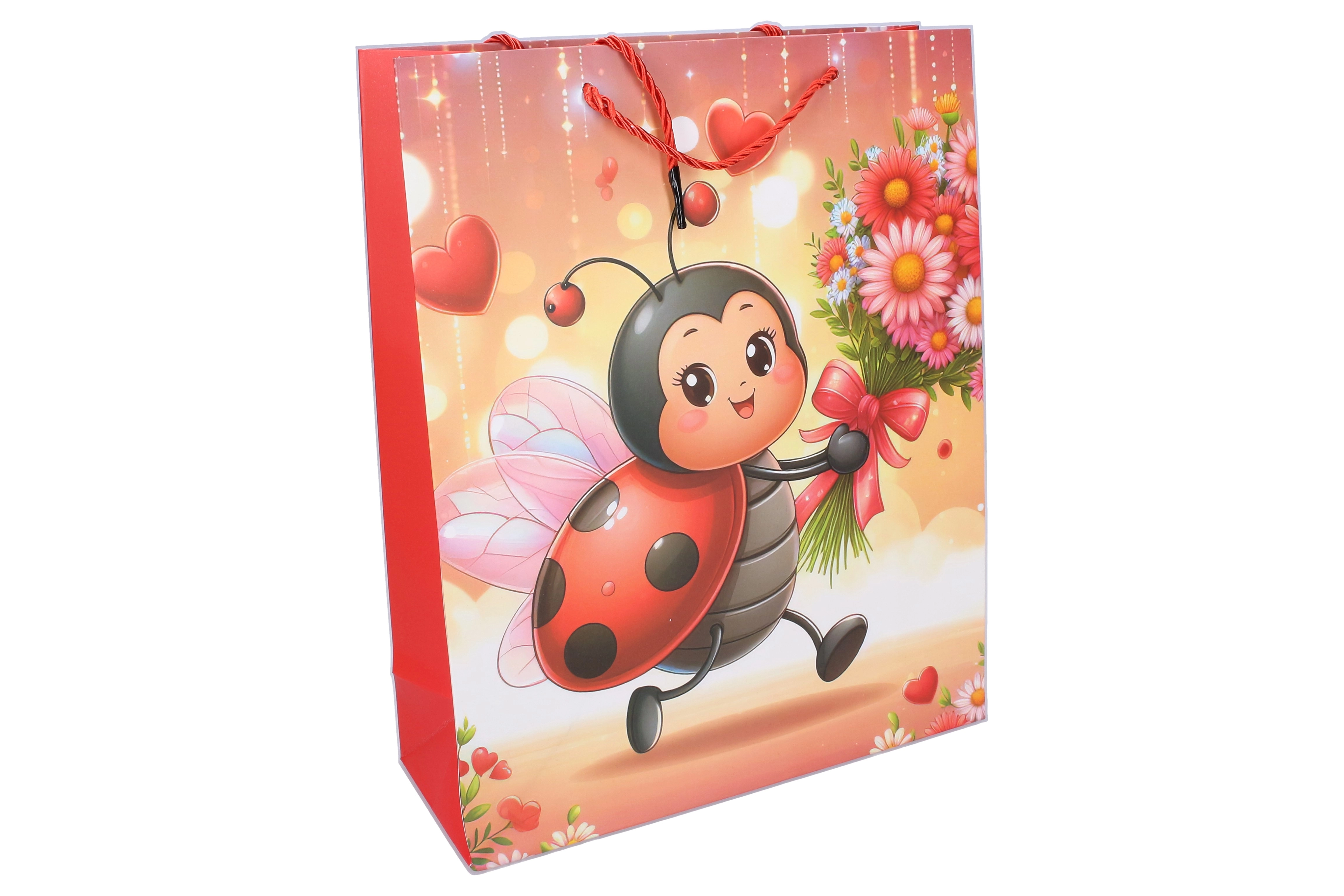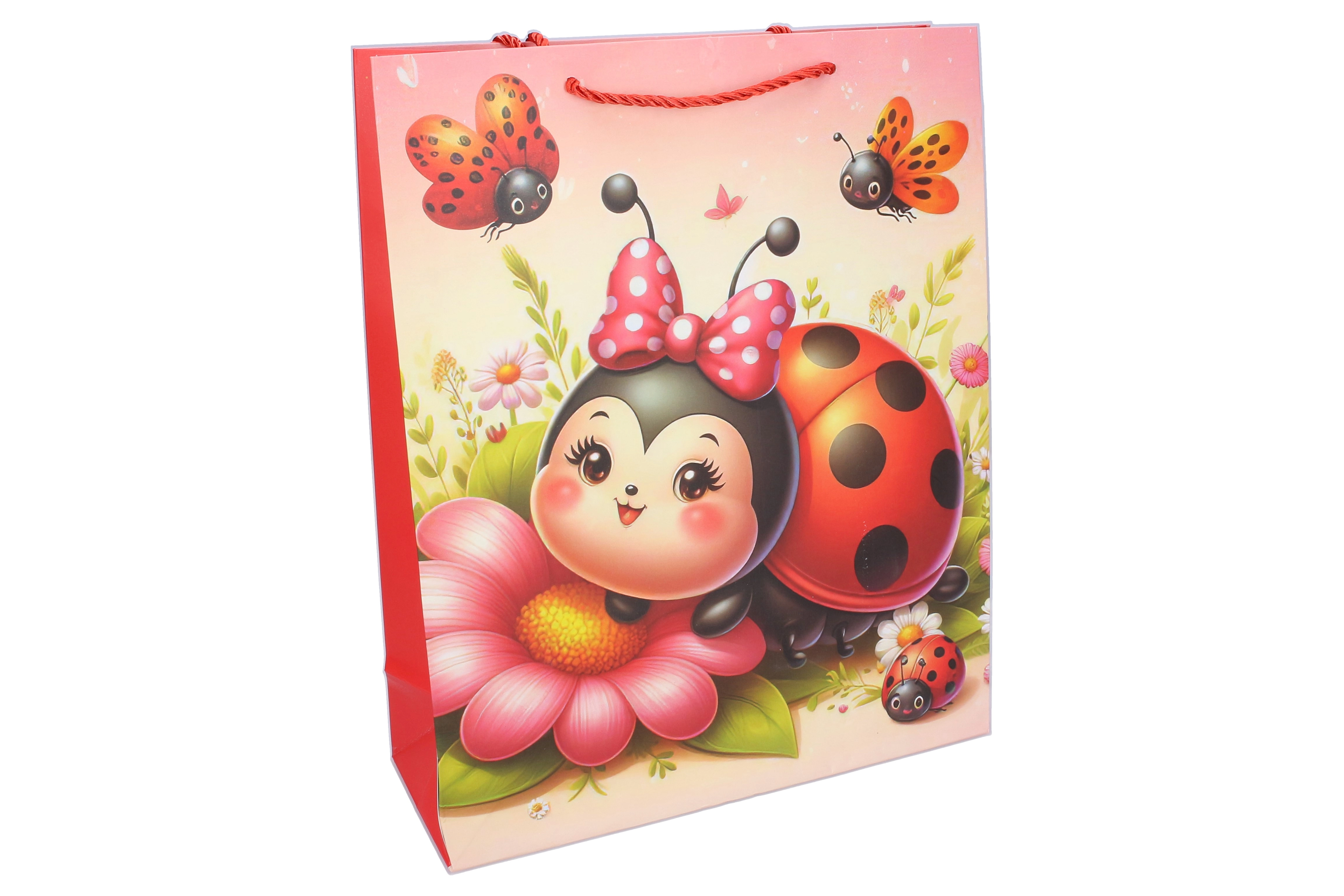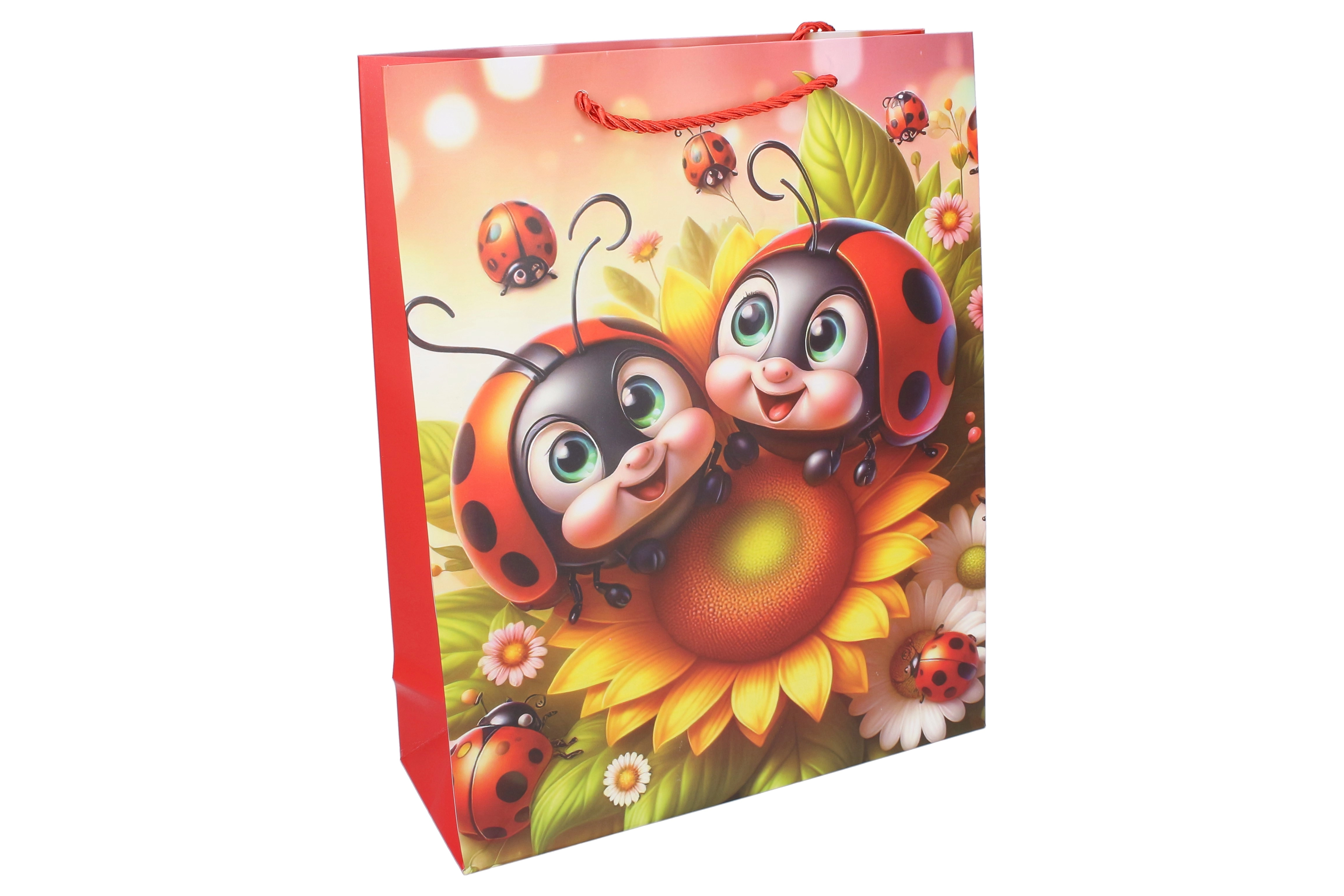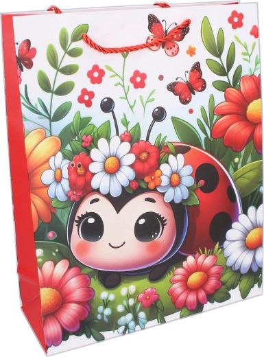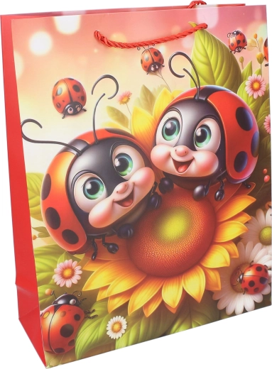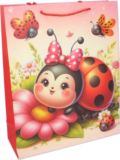 Roztomilá dárková taška v kompaktní velikosti S (18 × 24 × 8,5 cm) s dětským motivem berušky potěší malé i velké. Ideální na menší dárky, hračky či drobnosti. Nabízí 4 atraktivní varianty, je pevná, praktická a díky barevnému potisku udělá radost už při předání.