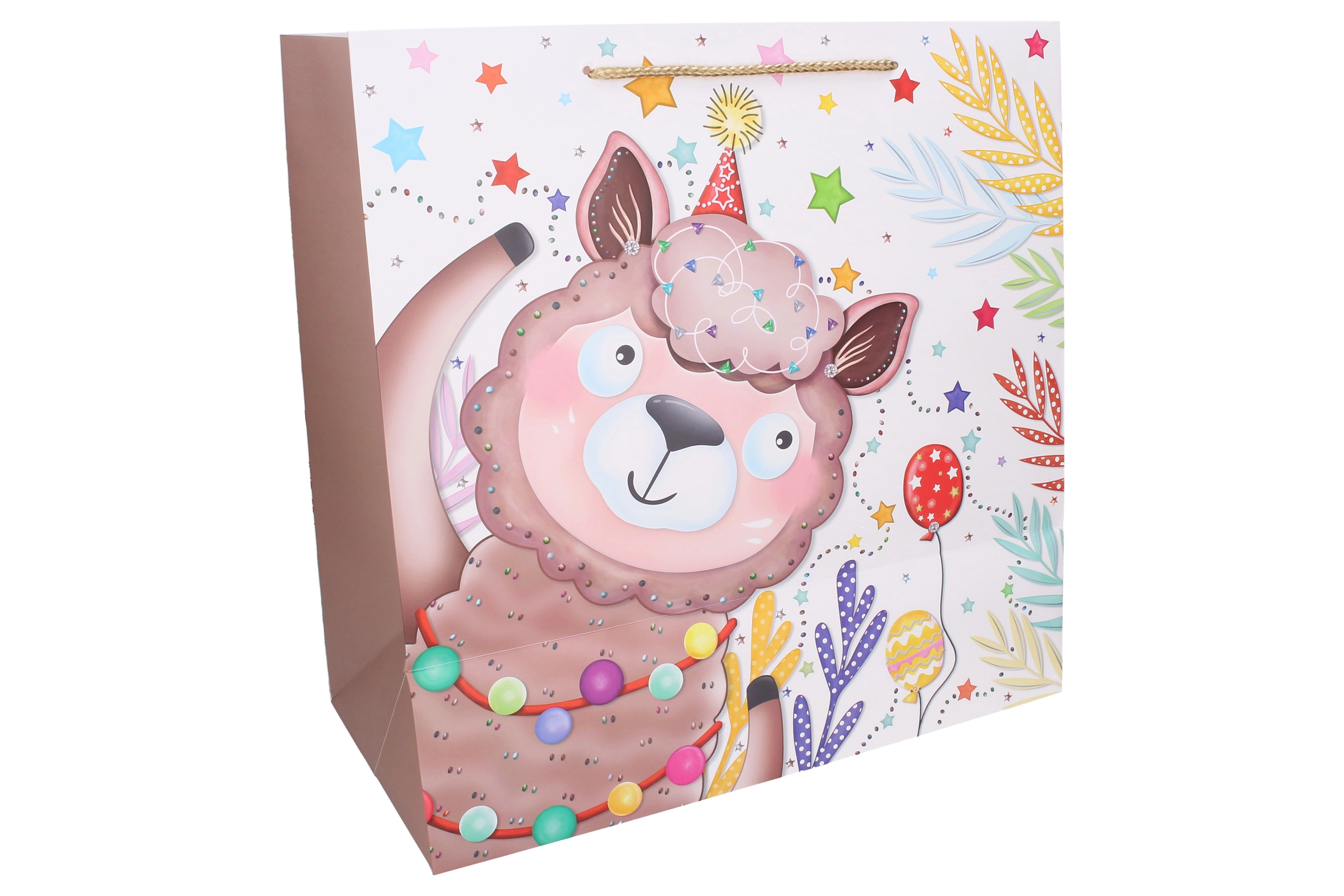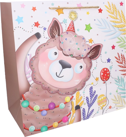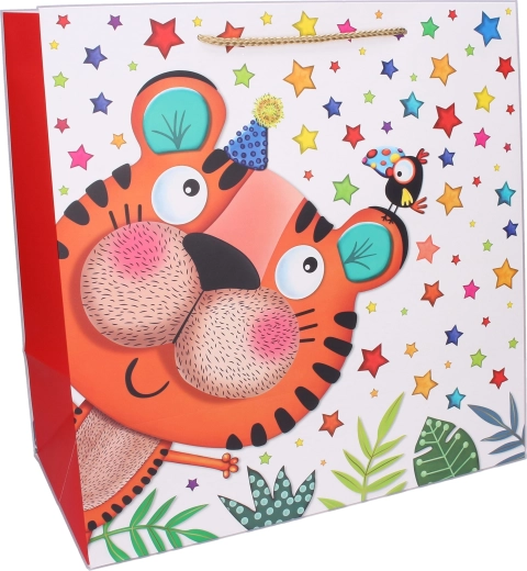 Tato prostorná dárková taška s dětskými motivy je perfektní volbou pro balení objemnějších překvapení. Kvalitní papír, barevný potisk a pevné šňůrkové uši zaručují snadné a bezpečné přenášení. Roztomilá zvířátka a hravé ilustrace dodají každému dárku radostný vzhled.