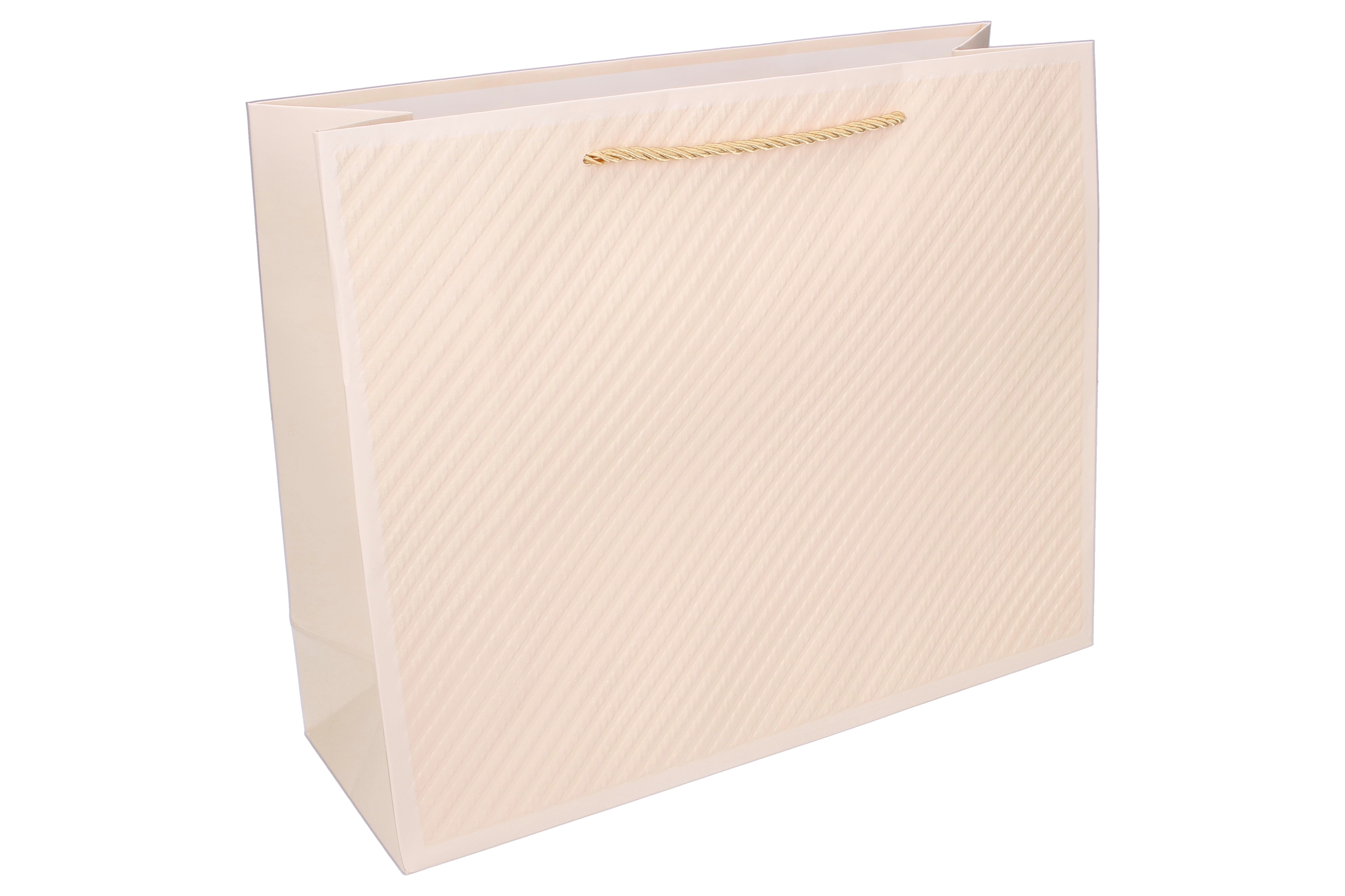 Díky pevným provázkovým uším se taška dobře drží a široké dno zajišťuje stabilitu i pro objemnější dárky. Vyberte si z nadčasových barev a dolaďte balení k příležitosti i stylu obdarovaného.