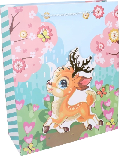 Taška je vhodná pro narozeniny, svátky, dětské párty i drobné pozornosti. Díky kompaktní velikosti S snadno pojme malé až středně lehké dárky, hračky, sladkosti či kosmetiku. Vyberte si ze čtyř oblíbených motivů – tygr, jelen, veverka nebo kočka – a dolaďte balení k příležitosti i osobnosti obdarovaného.