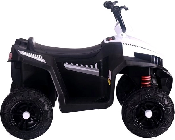 Objevte radost z jízdy s dětským akumulátorovým quadem v atraktivní bílo‑černé kombinaci. Robustní čtyřkolová konstrukce se širokými stupačkami a pohodlným sedlem z měkké ekokůže poskytuje stabilitu, komfort a jisté ovládání i pro začínající jezdce. Realistické detaily kokpitu, funkční tlačítka a zvukové efekty podporují představivost a dodávají jízdě autentičnost.