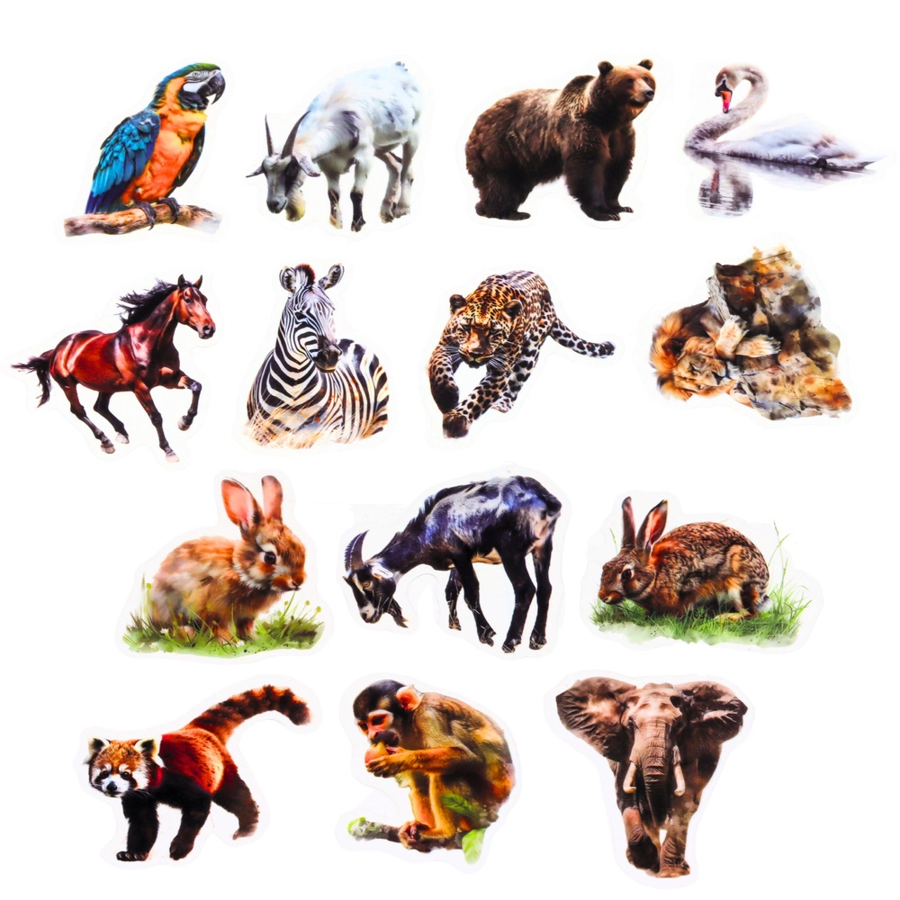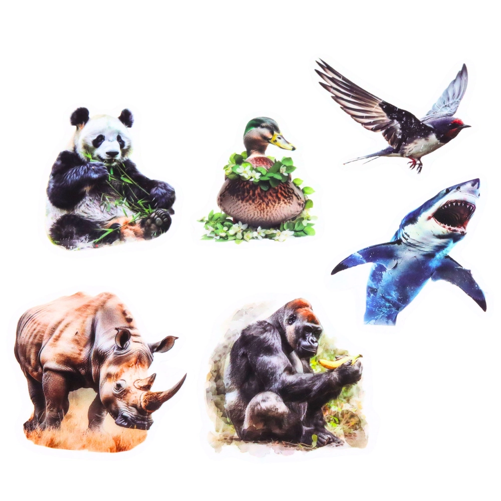Tyto barevné samolepky s realistickými motivy zvířat promění každý projekt v originální dílo. Díky průhlednému podkladu vynikne samotné zvíře a samolepka působí čistě a moderně na světlých i tmavých plochách. Hladký povrch usnadňuje nalepení a dodává samolepkám odolný, lesklý vzhled.