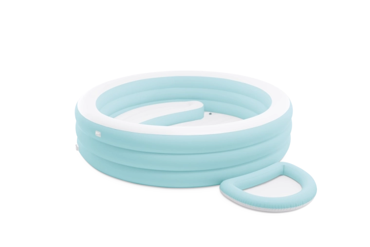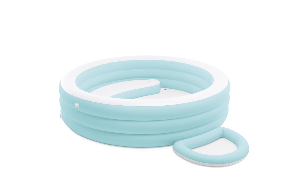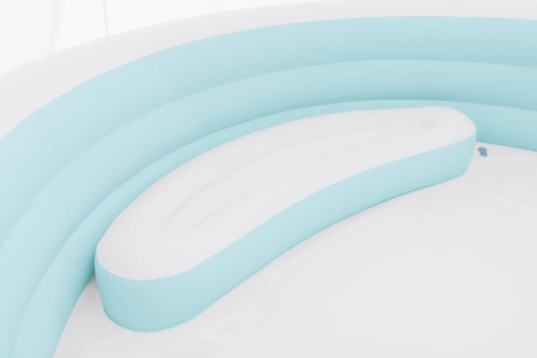 Vestavěná nafukovací sedačka a vícekomorové stěny umožňují pohodlné sezení a relaxaci, ideální pro dospělé i děti.