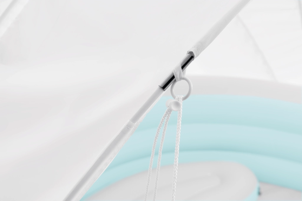 - Ochrana před sluncem: odnímatelná stříška s UPF 50+ pro bezpečnější pobyt ve vodě.