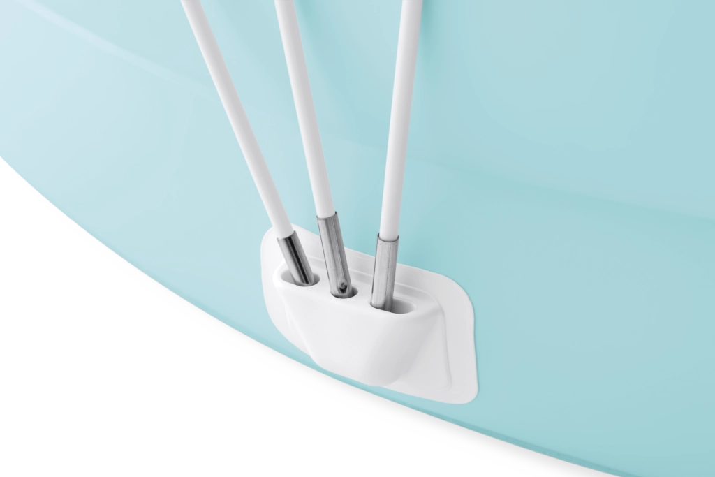 Odnímatelná stříška z lehkého materiálu se stupněm ochrany UPF 50+ poskytuje spolehlivý stín během horkých dnů. Stabilní uchycení pomocí pevných tyček a držáků zaručuje bezpečné používání a snadné odepnutí. Díky vypouštěcímu ventilu na dně bazénu je vypuštění vody rychlé a jednoduché, bez složité manipulace.