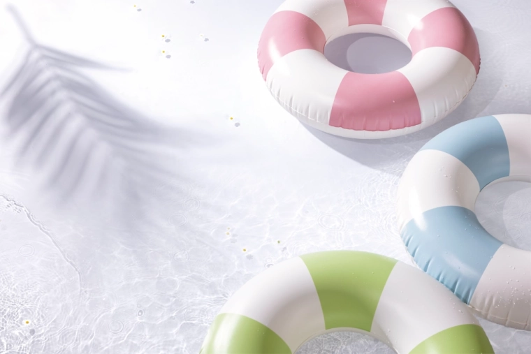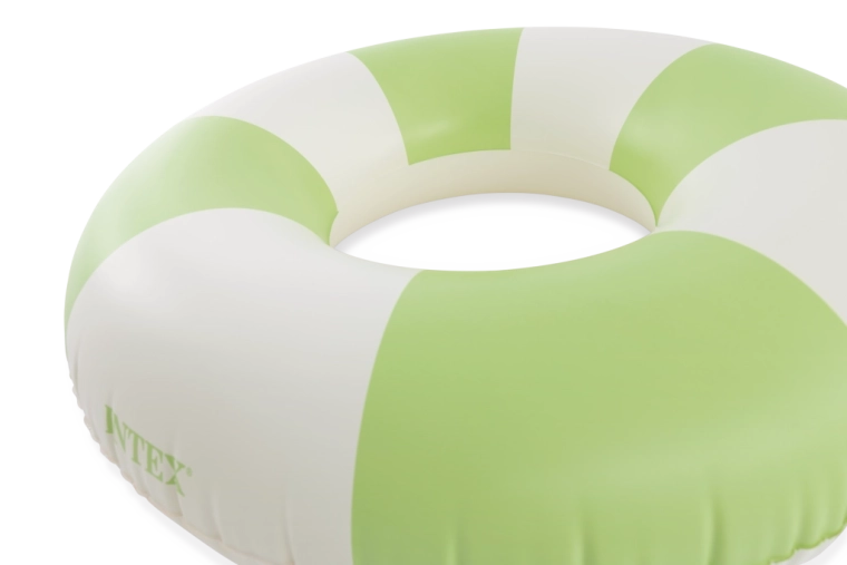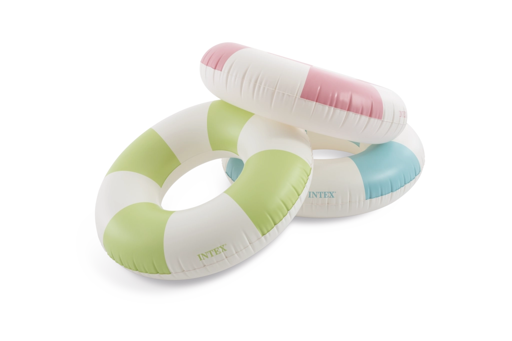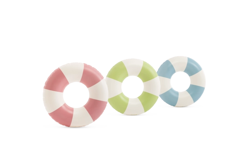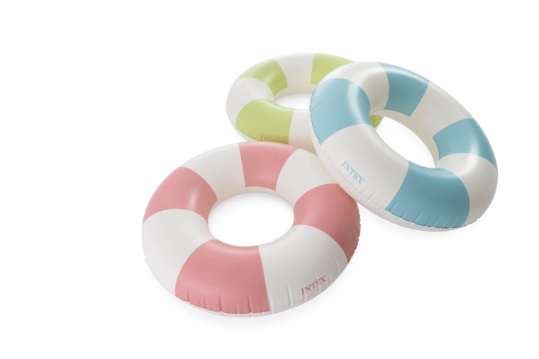 Trendy kombinace růžové, modré a zelené s bílými segmenty nejen skvěle vypadá, ale také zvyšuje viditelnost kruhu ve vodě.
