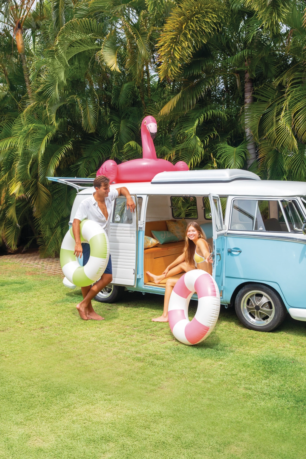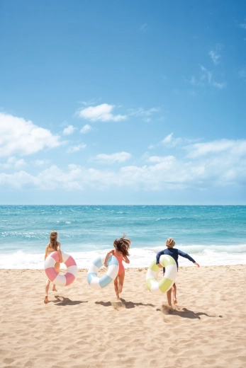 Nafukovací kruh Coastal Cabana kombinuje svěží design v pastelových tónech modré, zelené a růžové s praktickými funkcemi pro bezpečné a pohodlné vodní radovánky. Díky průměru 91 cm poskytuje dostatek prostoru a pohodlí jak do bazénu, tak k moři.