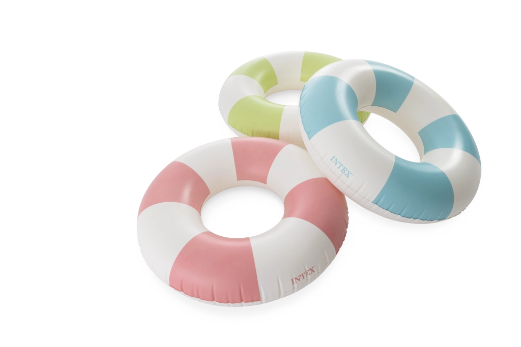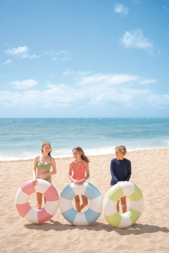 Užijte si léto s nafukovacím kruhem Coastal Cabana o průměru 91 cm, ideálním pro bazén i moře. Nabízí stylové pastelové pruhy, odolné PVC a rychlé nafouknutí díky praktickému ventilu. Skvělá viditelnost ve vodě a pohodlné používání pro děti od 9 let i mladší dospělé.