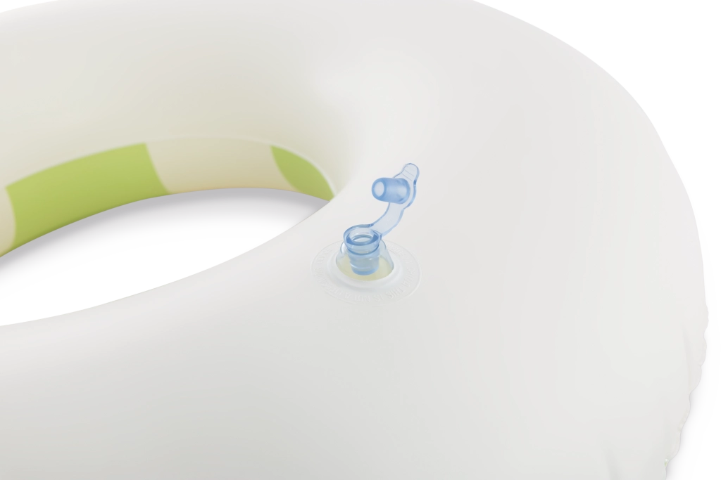 Praktický ventil umožňuje rychlé nafouknutí i vyfouknutí. Kruh je lehký, snadno přenosný a ideální na cesty.