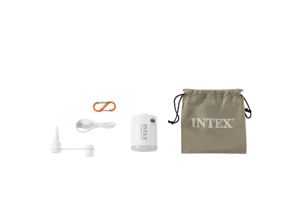 Kompaktní a lehká elektrická pumpa INtex Quick-Fill USB 200R pro rychlé nafukování matrací, lehátek a hraček. Nabízí průtok až 200 l/min, nabíjení přes USB‑C, vestavěnou baterii 3,7 V a praktické LED světlo až na 6 hodin. Díky karabině ji snadno připnete na batoh či stan – ideální na kempování i cestování.