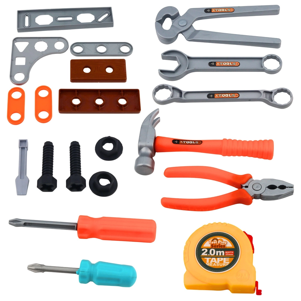 Pila ruční, kladivo, šroubováky, klíče a měřítko rozšíří možnosti hry a rozvíjí jemnou motoriku.