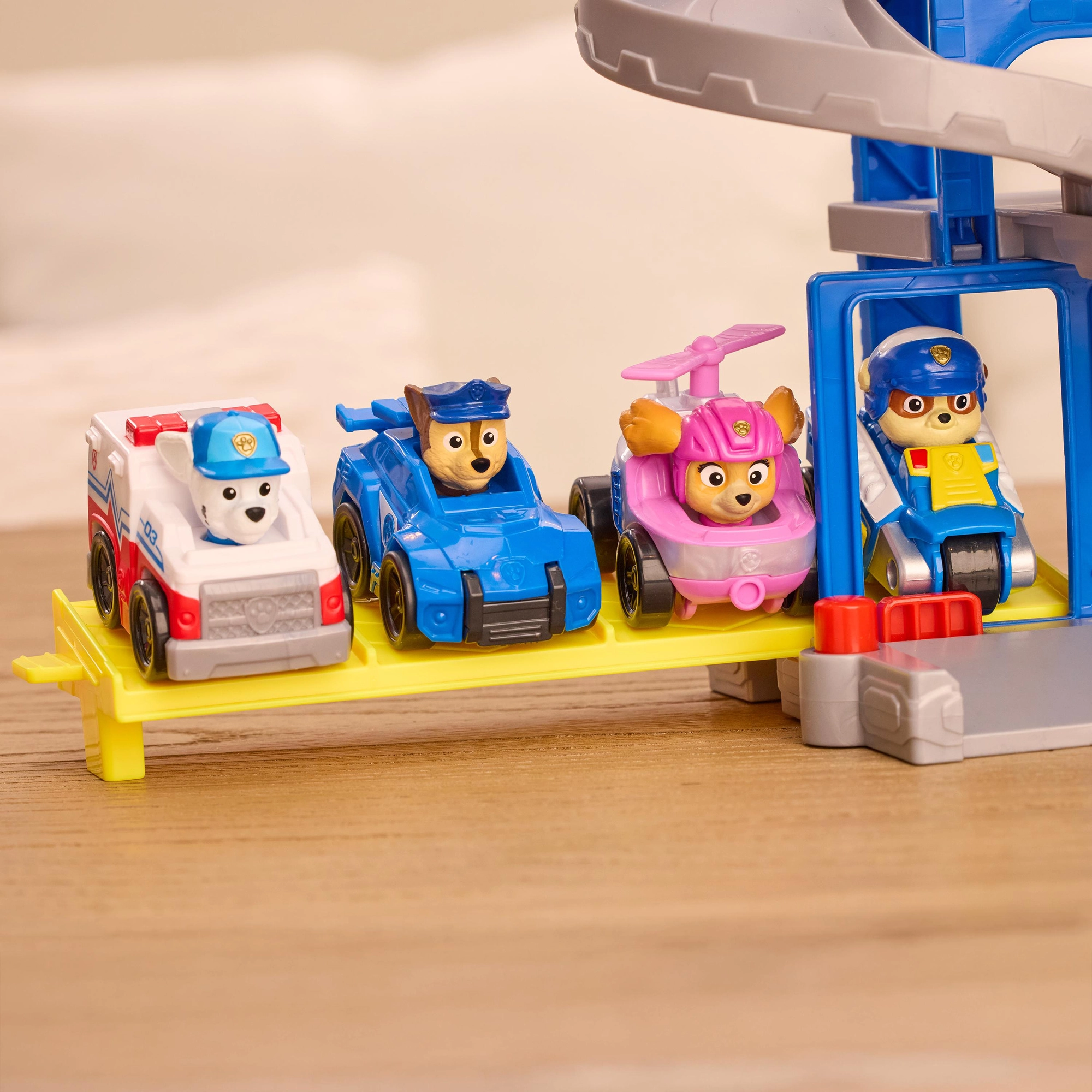 Centrála Pup Squad HQ je srdcem každé záchranné mise. Děti vyvezou Chase pomocí otočného výtahu na vrchol věže, aktivují skluzavku a pomocí vystřelovače ho pošlou do akce zachránit Kitty a zastavit neposedného starostu Humdingera. Robustní, barevná konstrukce podporuje představivost i jemnou motoriku.