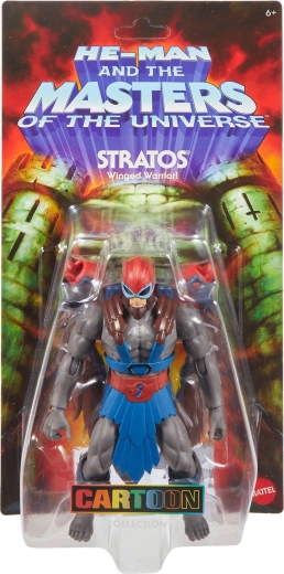 Postava STRATOS, létající válečník a spojenec HE-MANA, hlídkuje nad Eternií a brání Castle Grayskull před silami Skeletora. Figurka přináší moderní pojetí klasického hrdiny s výraznými detaily a širokými možnostmi nastavování pro akční scény i vystavení ve vitríně.