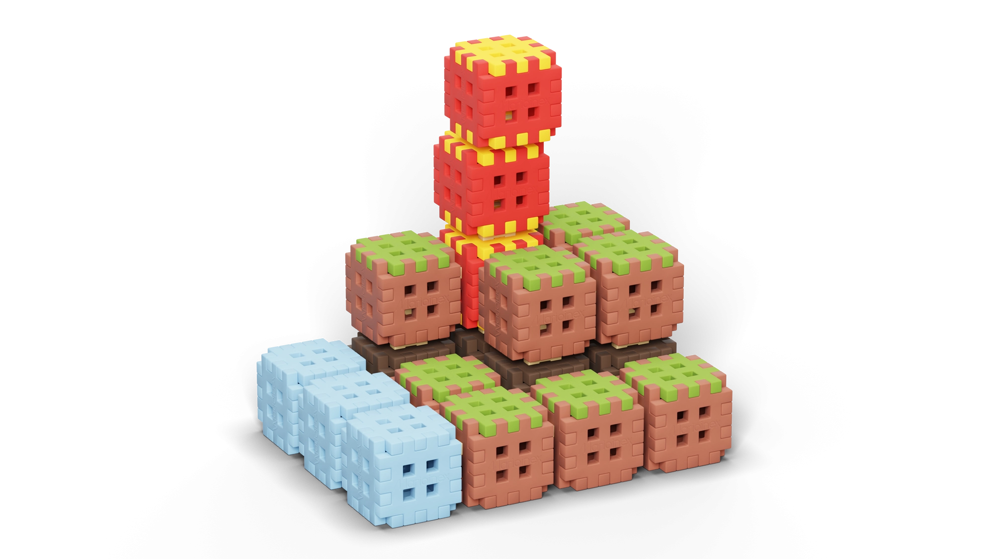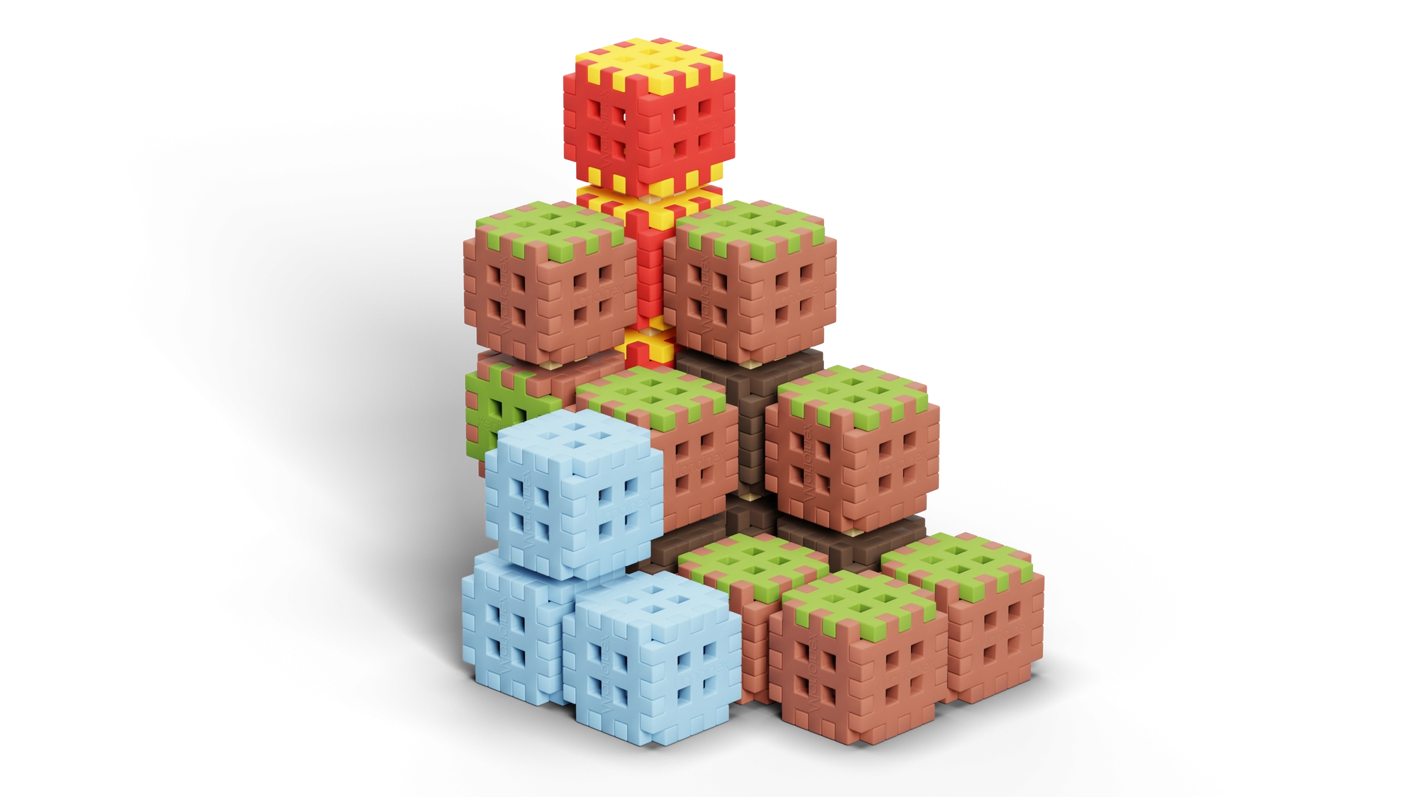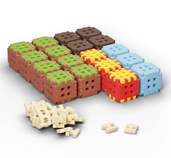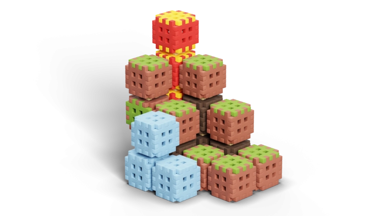 Kostky s vícestrannými zámky umožňují pevné spojení ze všech stran. Stavte terén, věže i schodovité struktury a kdykoli je přepracujte podle fantazie.
