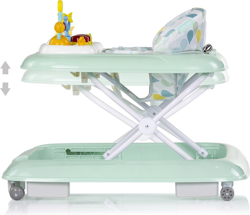 Chodítko Baby Steps v elegantní mint barvě kombinuje hru, učení a pohyb v jednom. Díky interaktivnímu panelu s barevnými hračkami, světly a tlačítky dítě objevuje nové podněty, procvičuje jemnou motoriku a zároveň si buduje sebevědomí při prvních pokusech o chůzi. Tři úrovně výšky umožní přizpůsobit chodítko aktuální výšce dítěte pro ergonomické a pohodlné používání.