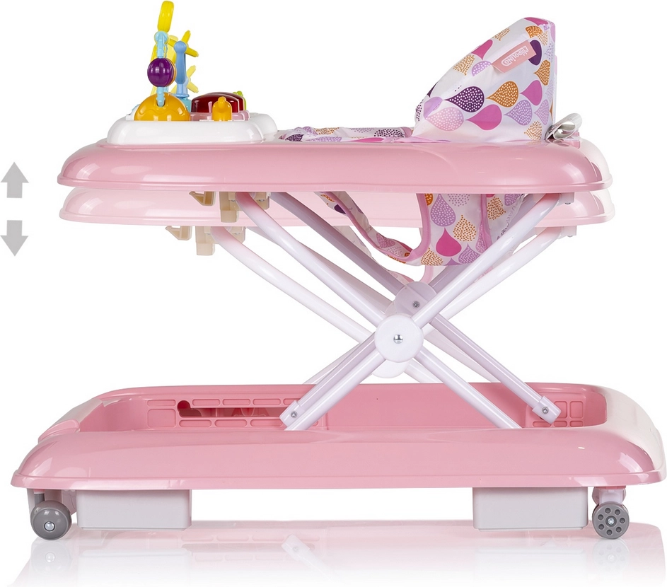 Interaktivní hrací panel se světly, tlačítky a 12 melodiemi motivuje k aktivitě a podporuje smyslové vnímání i jemnou motoriku. Sedátko s vysokou opěrkou zad zajistí správné držení těla a pohodlí, výšku snadno přizpůsobíte ve třech polohách. Chodítko se jednoduše skládá pro úsporu místa a snadné přenášení.