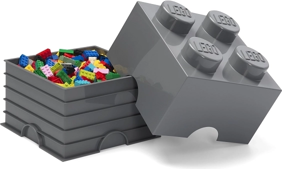 Stylový plastový box ve tvaru legendární kostky LEGO přináší zábavné uklízení i chytré organizování hraček. Díky kompatibilnímu tvaru lze boxy na sebe snadno stohovat jako skutečné LEGO kostky, takže ušetříte místo a vytvoříte originální dekoraci dětského pokoje. Je vyroben z kvalitního polypropylenu (PP), bez BPA, ftalátů a PVC, a nabízí praktický objem pro kostičky i drobné hračky. Tmavě šedá barva se hodí do moderních interiérů.