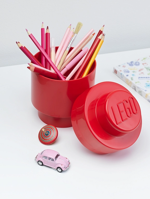 Vneste do pokoje pořádek i hravý design s kulatým úložným boxem inspirovaným ikonickou kostkou LEGO. Díky kompaktním rozměrům se skvěle hodí na pracovní stůl, poličku i do dětského koutku a spolehlivě pojme psací potřeby, drobné hračky nebo stavebnicové dílky.