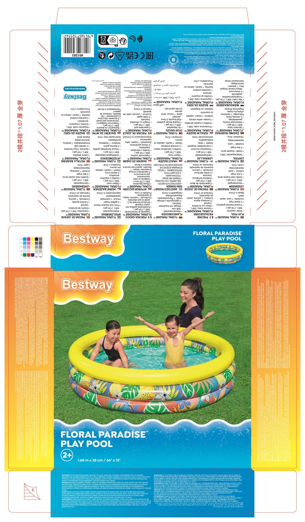 Rozjasněte léto s nafukovacím bazénem Floral Paradise pro děti od 2 let. Tříkomorová konstrukce se stabilními nafukovacími prstenci, bezpečnostními ventily a odolným PVC materiálem zajistí bezpečné vodní radovánky. Díky rychlé instalaci, kompaktním rozměrům po vyfouknutí a veselému tropickému designu je ideální na každou zahradu.