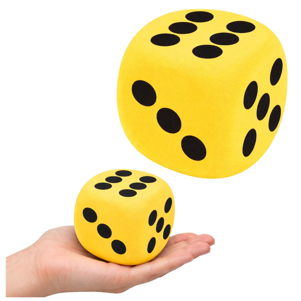 Tato velká pěnová kostka přináší tichou a bezpečnou zábavu při stolních i pohybových hrách. Díky lehké a odolné pěně drží tvar a je vhodná i pro nejmenší děti. Kontrastní puntíky jsou dobře viditelné, takže čísla děti snadno rozpoznají.