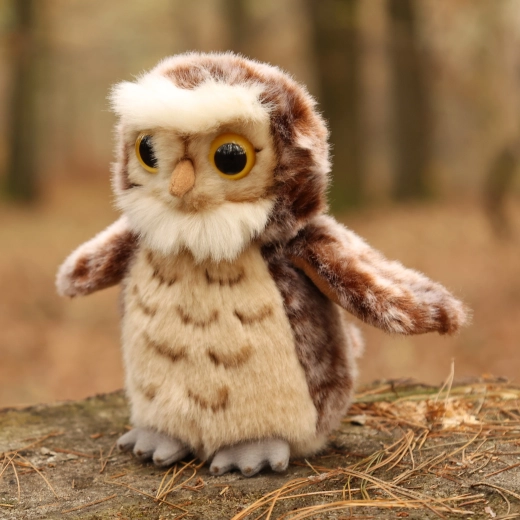 Tato plyšová sova spojuje roztomilý design a udržitelný přístup. Výplň z recyklovaných materiálů šetří životní prostředí, přesto zůstává nadýchaná a bezpečná pro děti od narození. Díky preciznímu ručnímu šití vyniká realistickými detaily – od měkkého zobáčku po výrazné oči.
