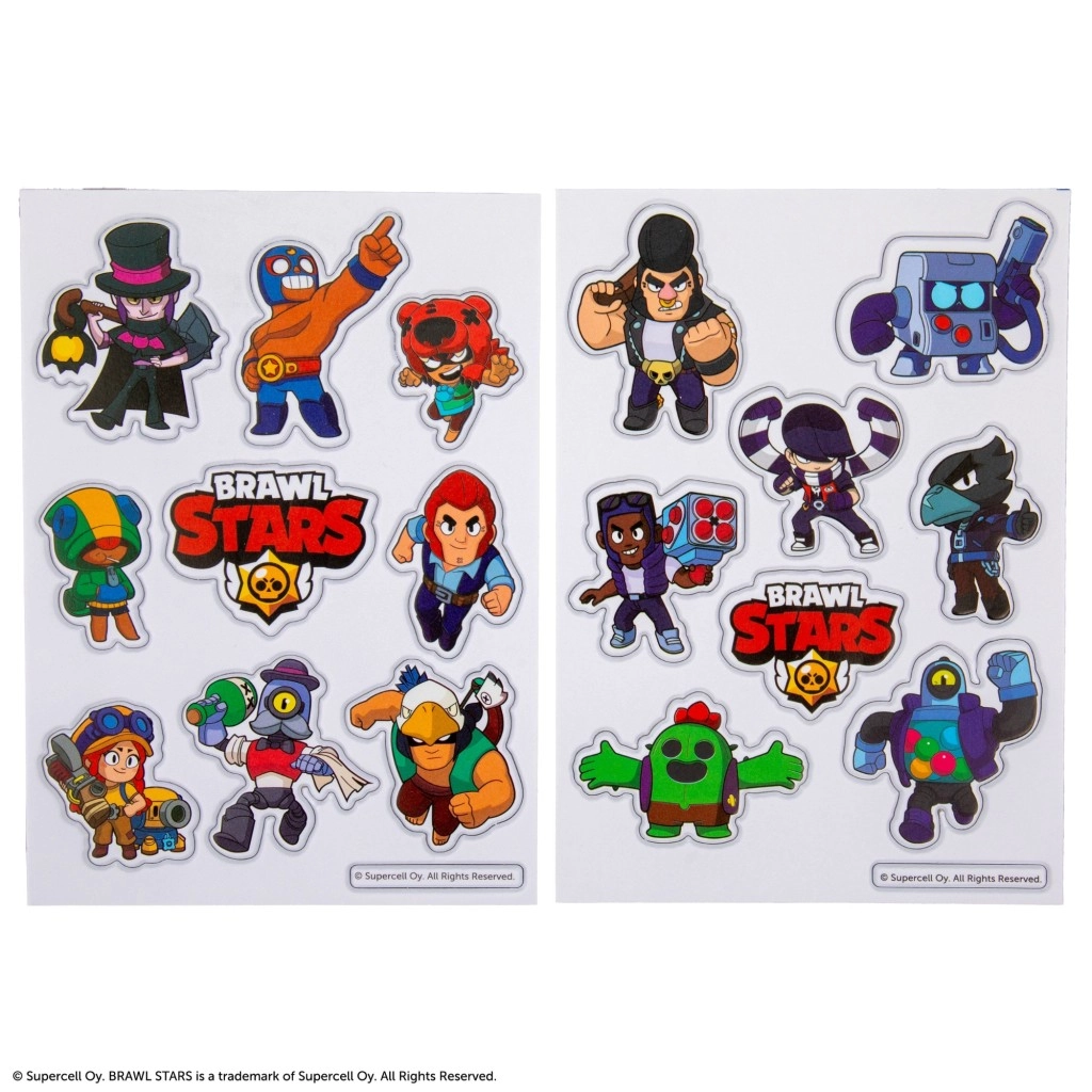 Rozjasněte své věci stylovými samolepkami z hry BRAWL STARS! Tato sada obsahuje 2 archy kvalitních PVC samolepek s 3D efektem, který dodává postavám plastický vzhled. Samolepky mají živé barvy, jsou odolné, lehce omyvatelné a snadno se aplikují na sešity, mobily, notebooky i další hladké povrchy.