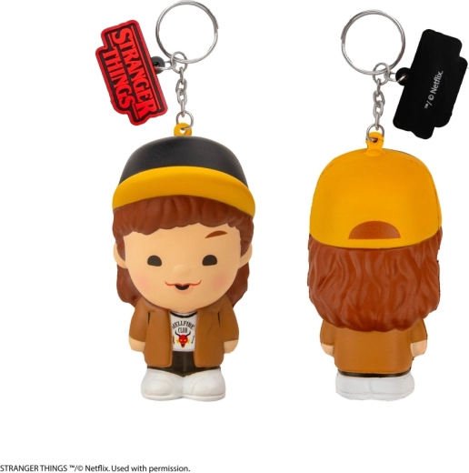 Ukažte svou lásku ke světu STRANGER THINGS s touto chibi squishy klíčenkou Dustina. Díky měkkému, stlačitelnému materiálu nabízí příjemný antistresový efekt, zatímco kovový kroužek a řetízek zaručí bezpečné uchycení vašich klíčů nebo ozdobí tašku.