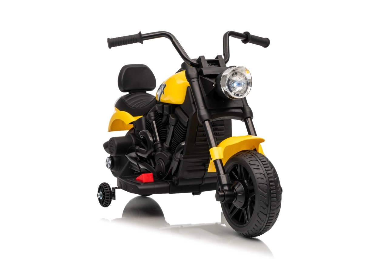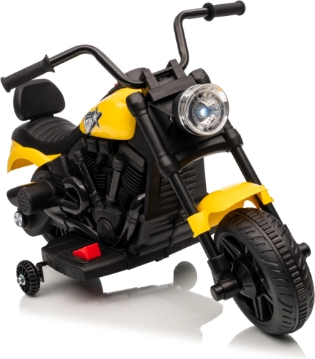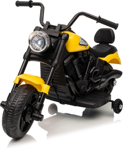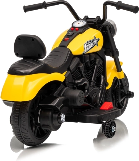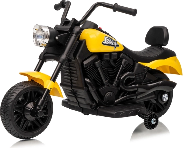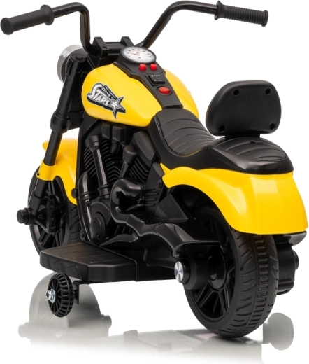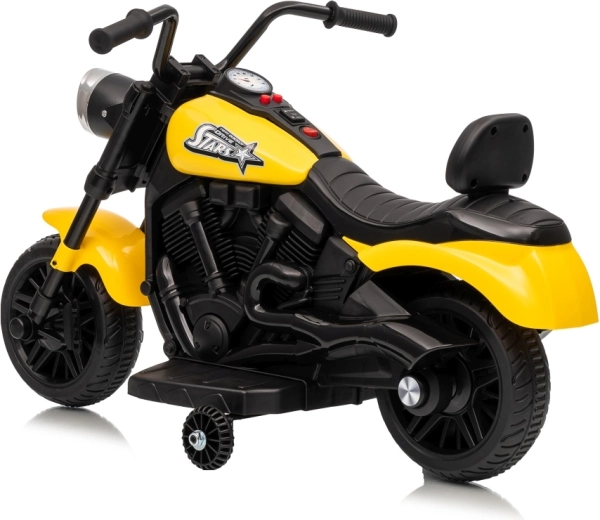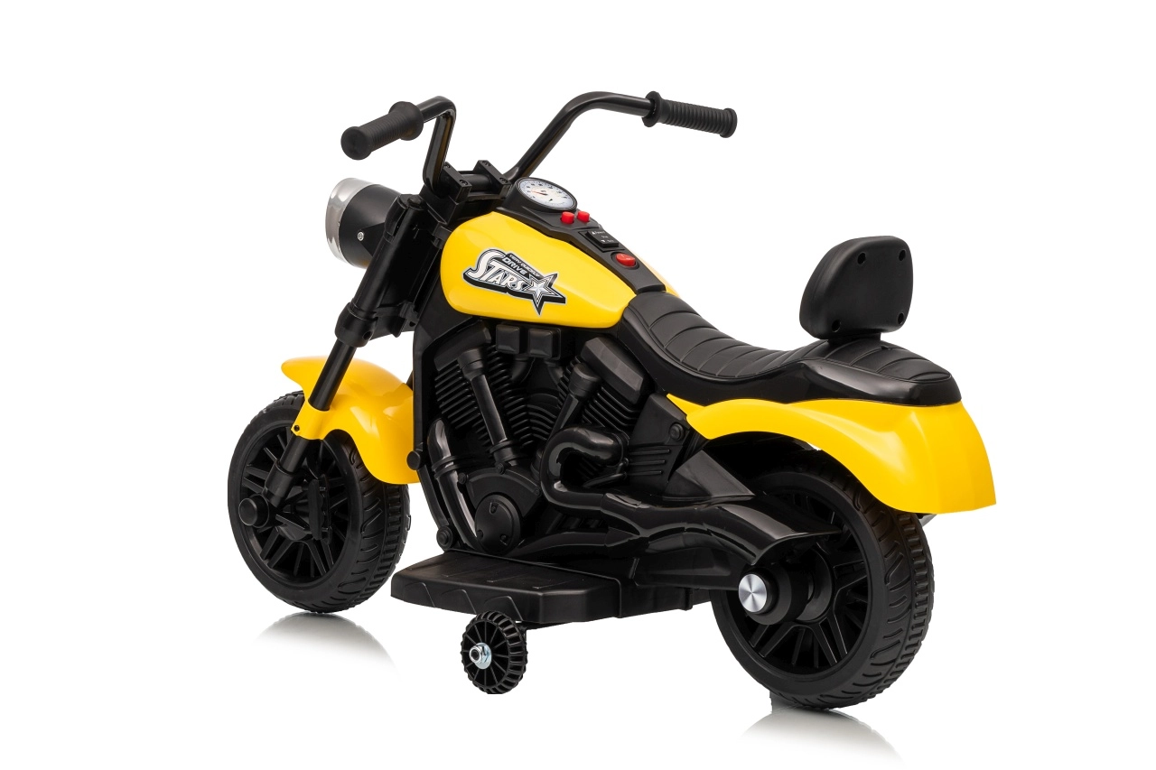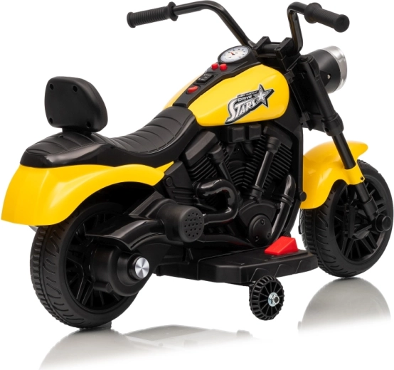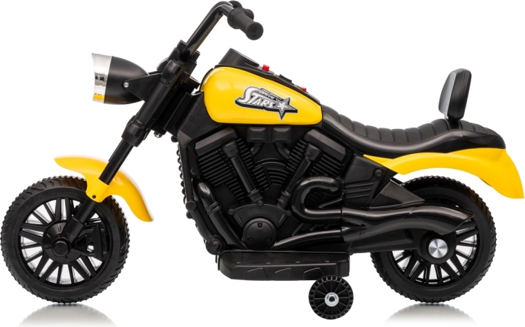 Stylová dětská elektrická motorka STAR v žluté barvě přináší bezpečnou zábavu pro malé jezdce. Díky pomalému startu, stabilizačním bočním kolečkům a přednímu LED světlu je jízda pohodlná a bezpečná. Motorka nabízí jízdu vpřed i vzad, snadné tlačítkové startování a zvukový panel s melodiemi pro ještě větší radost z jízdy.