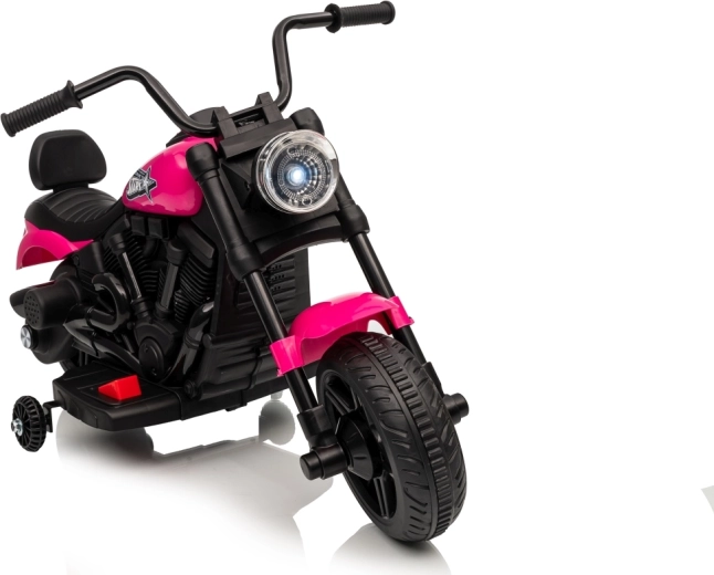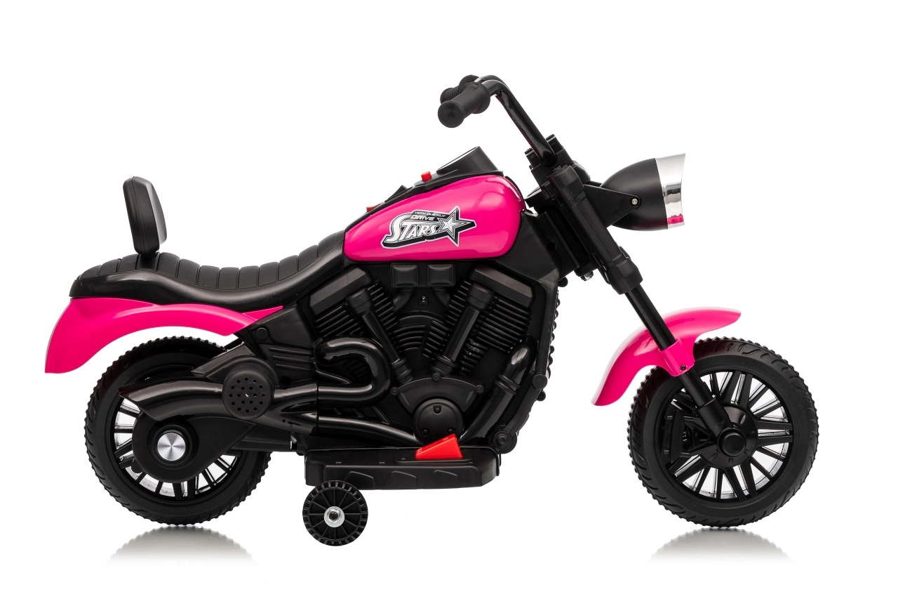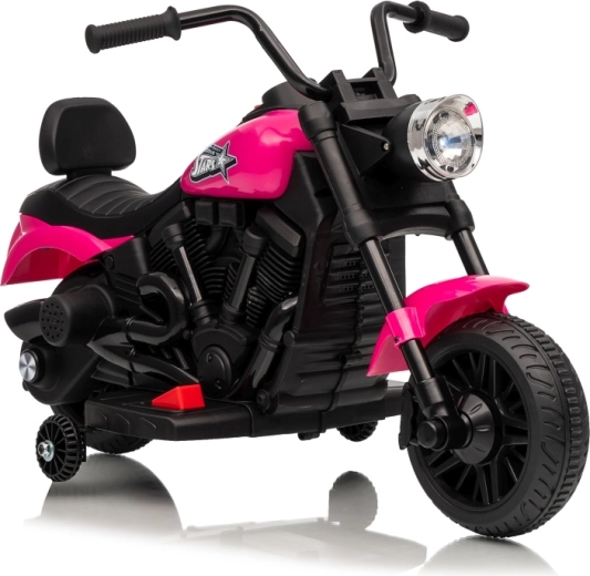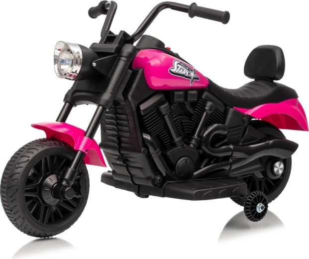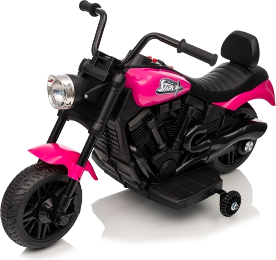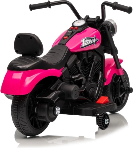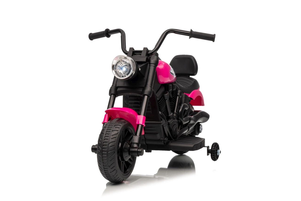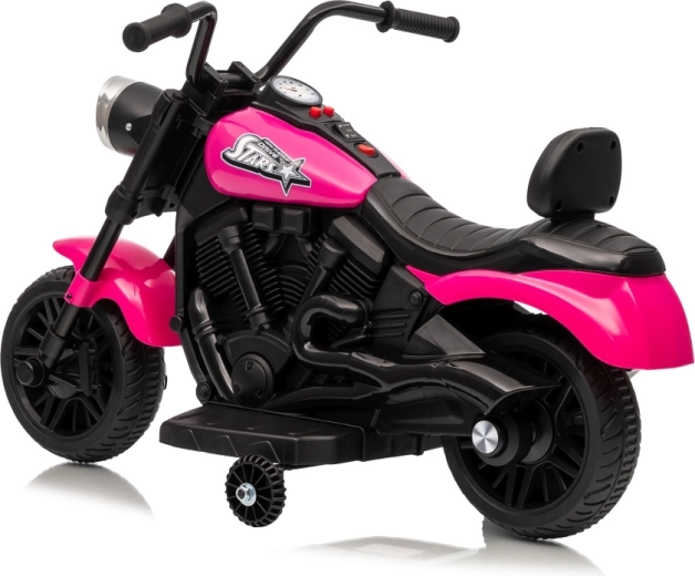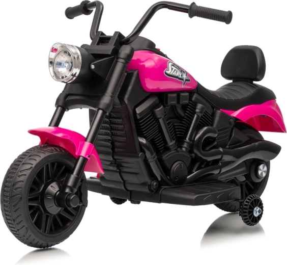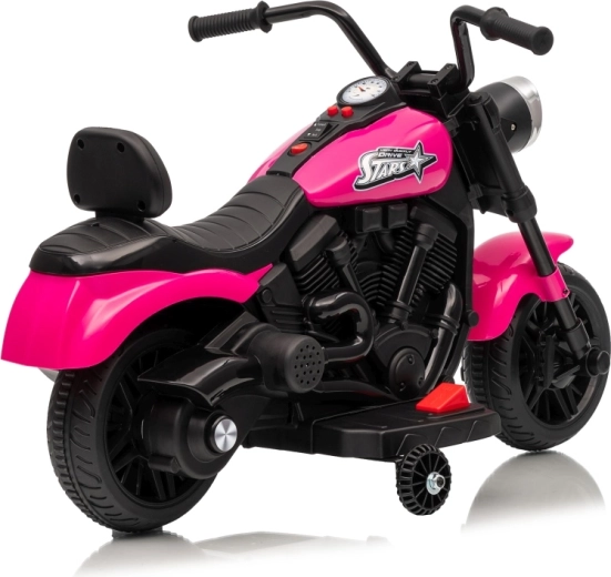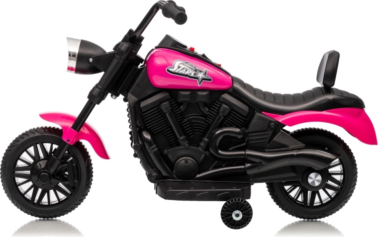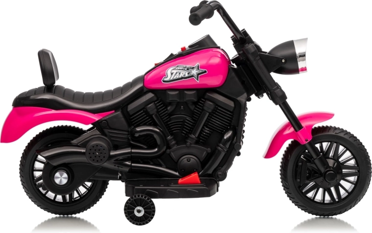 Růžová dětská elektrická motorka STAR nabízí bezpečnou jízdu s bočními kolečky, pohodlným sedlem a předním LED světlem. Díky plynulému rozjezdu, jízdě vpřed i vzad a předinstalovaným melodiím je ideální pro rozvoj motoriky a sebevědomí malých jezdců.
