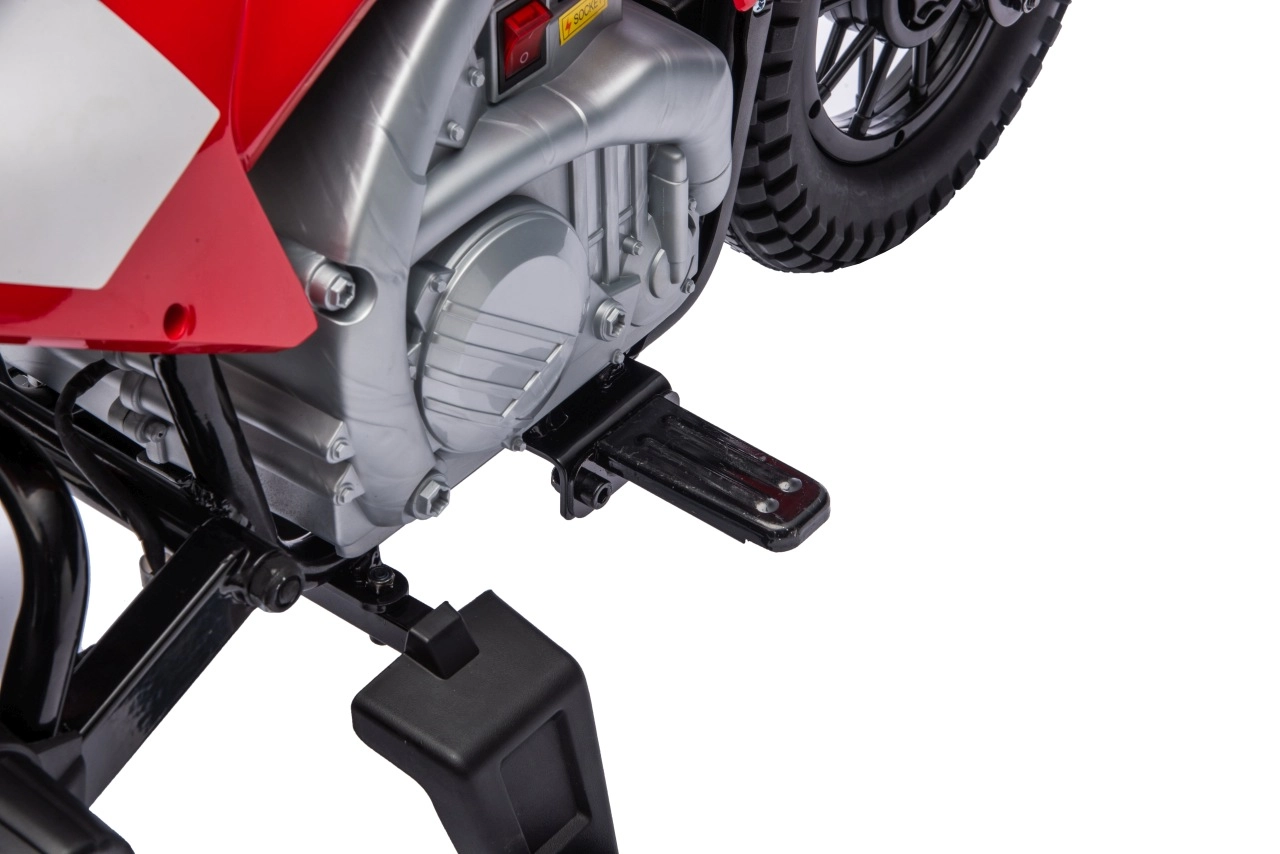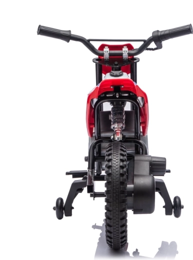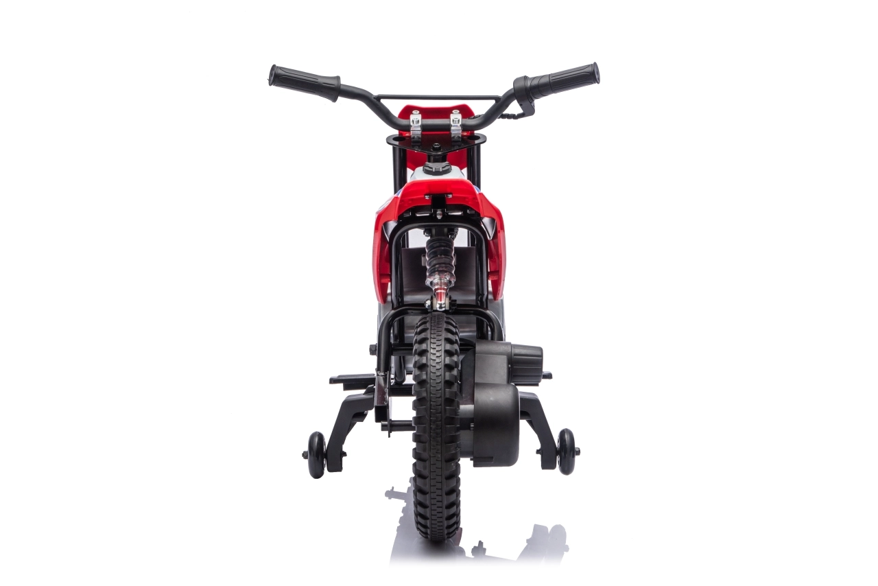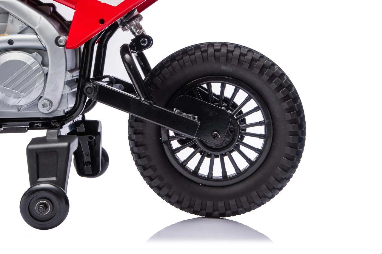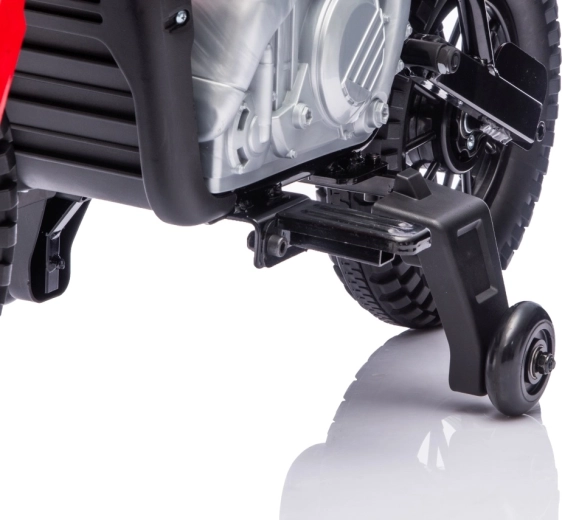 Stylová dětská elektrická motorka inspirovaná motocrossem HONDA CRF450R nadchne malé jezdce realistickým vzhledem a bezpečnou jízdou. Nabízí výkonný motor 35 W, baterii 12 V 7 Ah, široká EVA kola 32 × 7 cm pro tichou jízdu a boční stabilizační kolečka pro jistotu začátečníků. Pohodlné sedlo z eko kůže, plynulá regulace rychlosti na rukojeti a zadní nastavitelný tlumič se postarají o komfort a kontrolu na každé cestě.