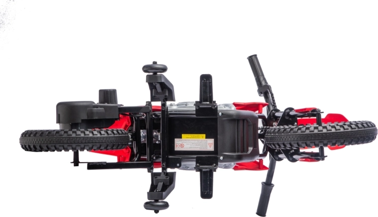 Motorka se startuje tlačítkem a rychlost se plynule reguluje manetkou na řídítkách – děti tak snadno získají cit pro ovládání. Boční kolečka dodají jistotu v začátcích a lze je později odejmout pro trénink rovnováhy. Díky baterii 12 V 7 Ah a motoru 35 W zvládne motorka plynulé rozjezdy a svižnou jízdu.