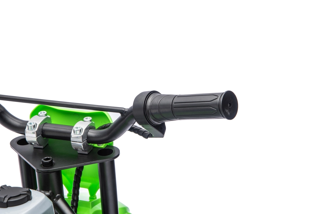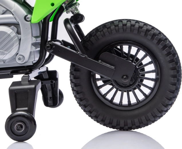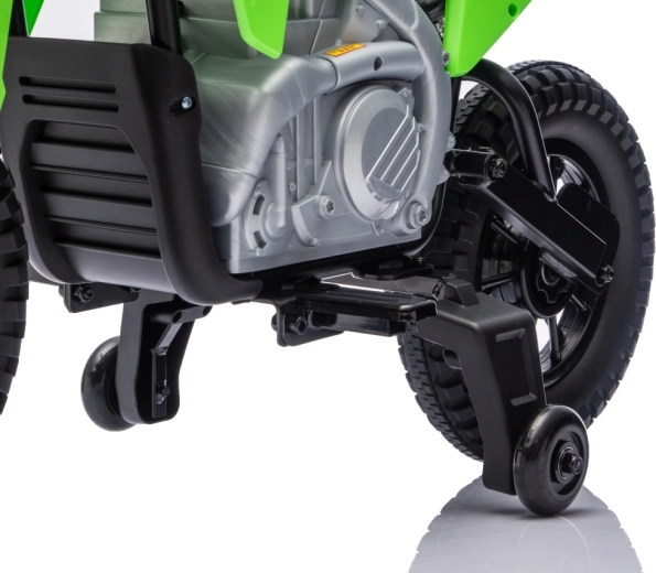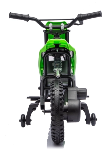 Tato zelená dětská motorka přináší autentický off‑road zážitek v bezpečné a zábavné formě. Díky zadnímu nastavitelnému tlumiči je jízda komfortní, zatímco odnímatelná boční kolečka pomáhají s udržením rovnováhy při prvních jízdách. Ovládání je snadné – motorka se spouští tlačítkem a rychlost se reguluje plynovou rukojetí.